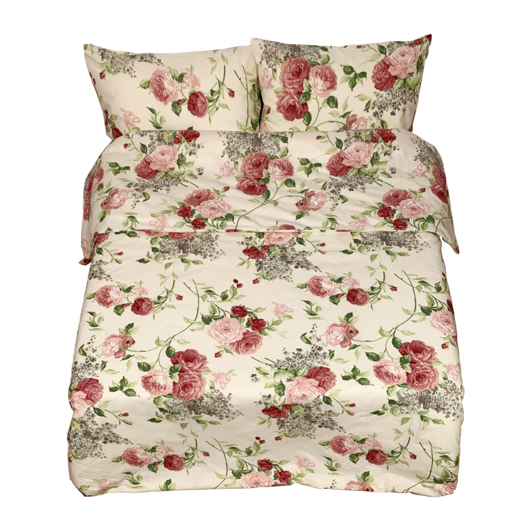 Red Rose – elegant design med luksuriøse røde og lyserøde roser på en blød ecru baggrund. Et perfekt valg for dem, der ønsker at skabe et klassisk og romantisk soveværelsesinteriør – en subtil, men udtryksfuld detalje til hygge og elegance.