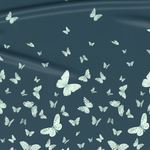 Dette luksuriøse lagen udstråler ynde og ro. Den dybe, mørkeblå farve tilfører interiøret luksus, mens de bløde, hvide sommerfugle giver lethed og subtil æstetik.