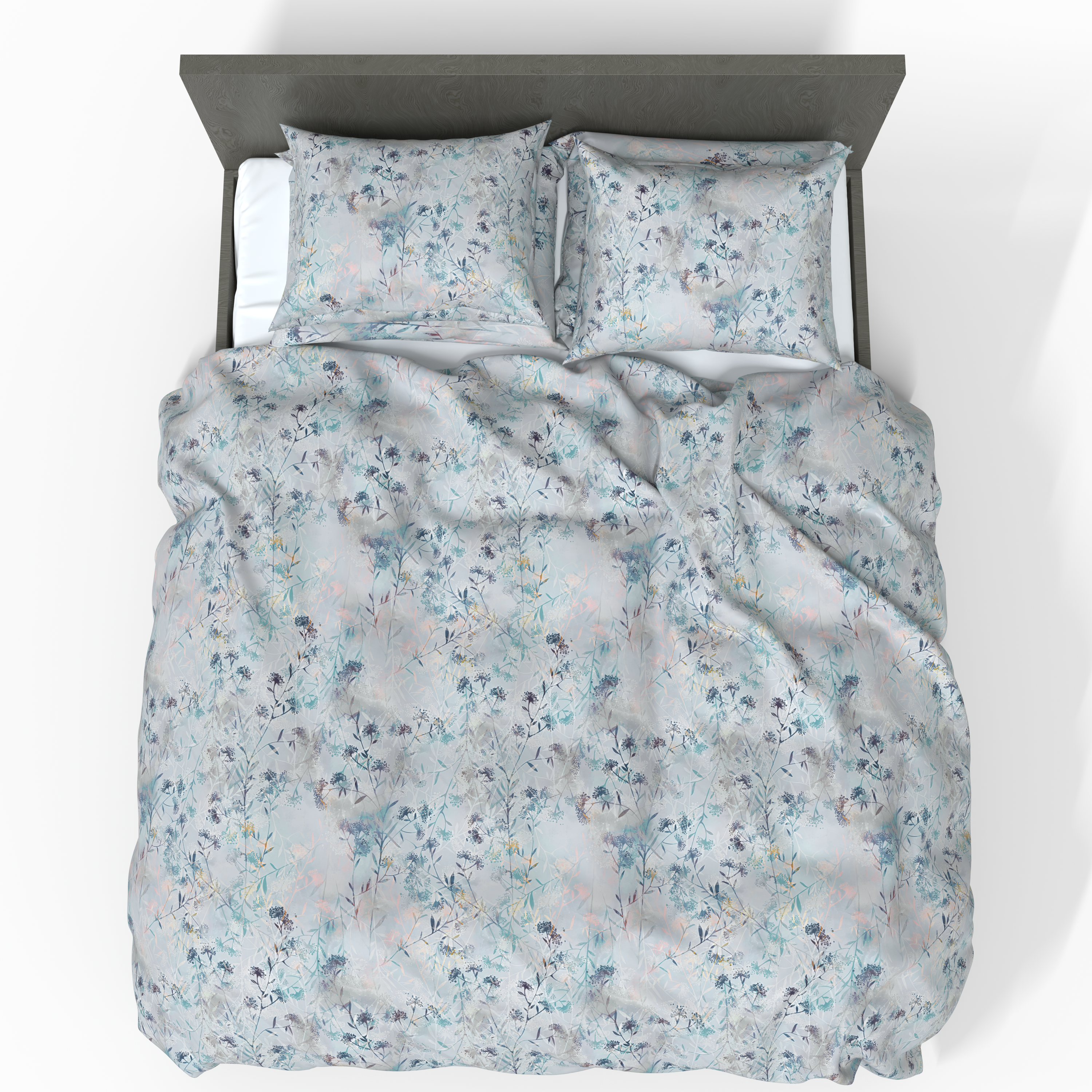 Denne Deluxe satin bomuld sengetøjssæt med fine blomster- og plantemotiver skaber en hyggelig og rolig atmosfære. Lysegrå farve med bløde rosa og blå accenter tilfører modernitet og friskhed til dit soveværelse, så du kan nyde komfort og ro.