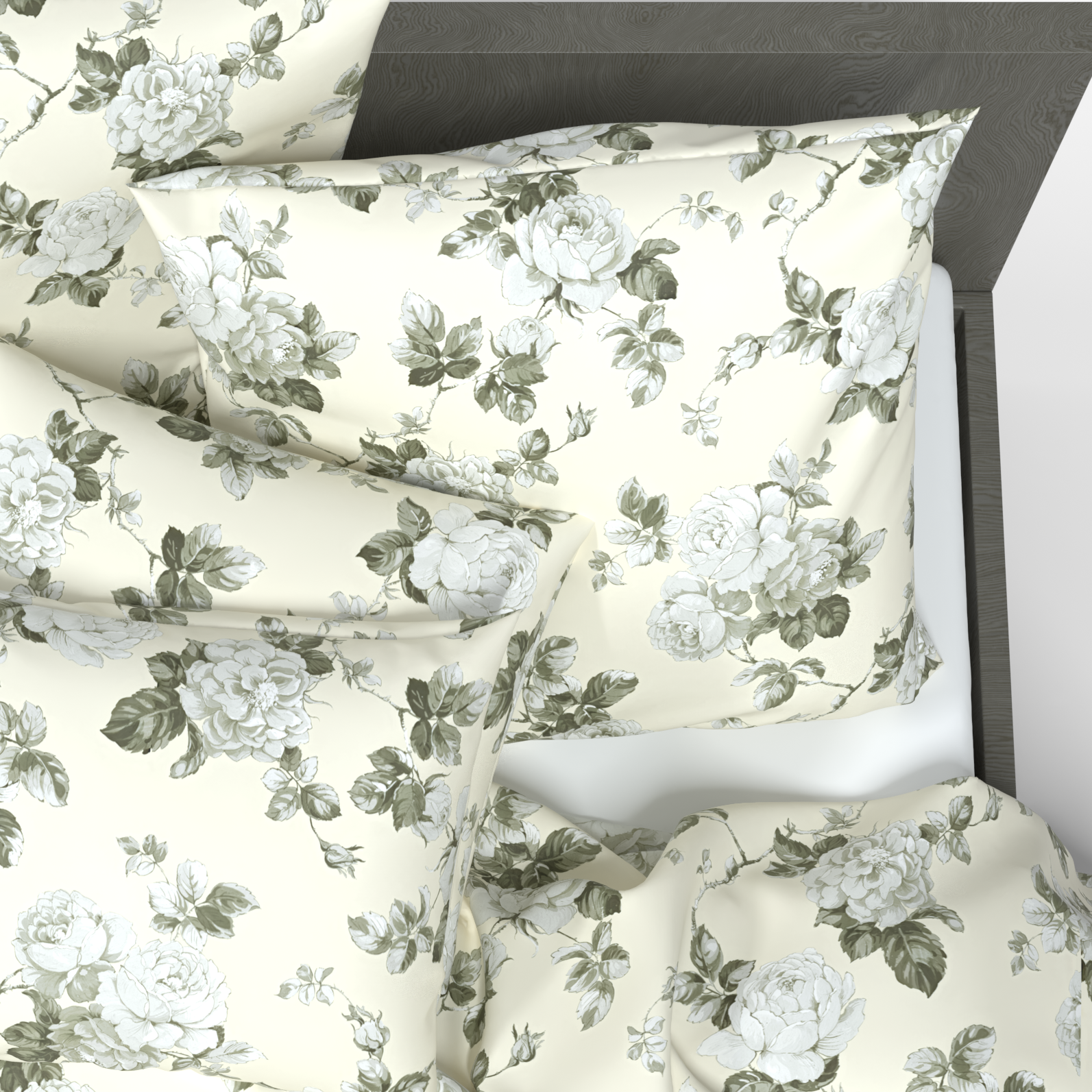 Dette eksklusive sengesæt skaber en romantisk, tidløs atmosfære, hvor bløde, cremede farver og subtile rosenmønstre dominerer. Det klassiske design passer perfekt til både moderne og traditionelle indretninger.