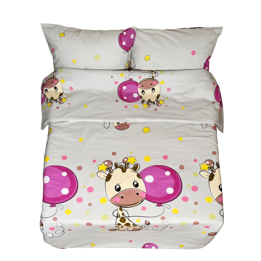 Giraffe – blødt og legende design med søde giraffer, farverige balloner og stjerner. Skabt for at give børns sengetøjsbetræk hygge og søde drømme hver nat.